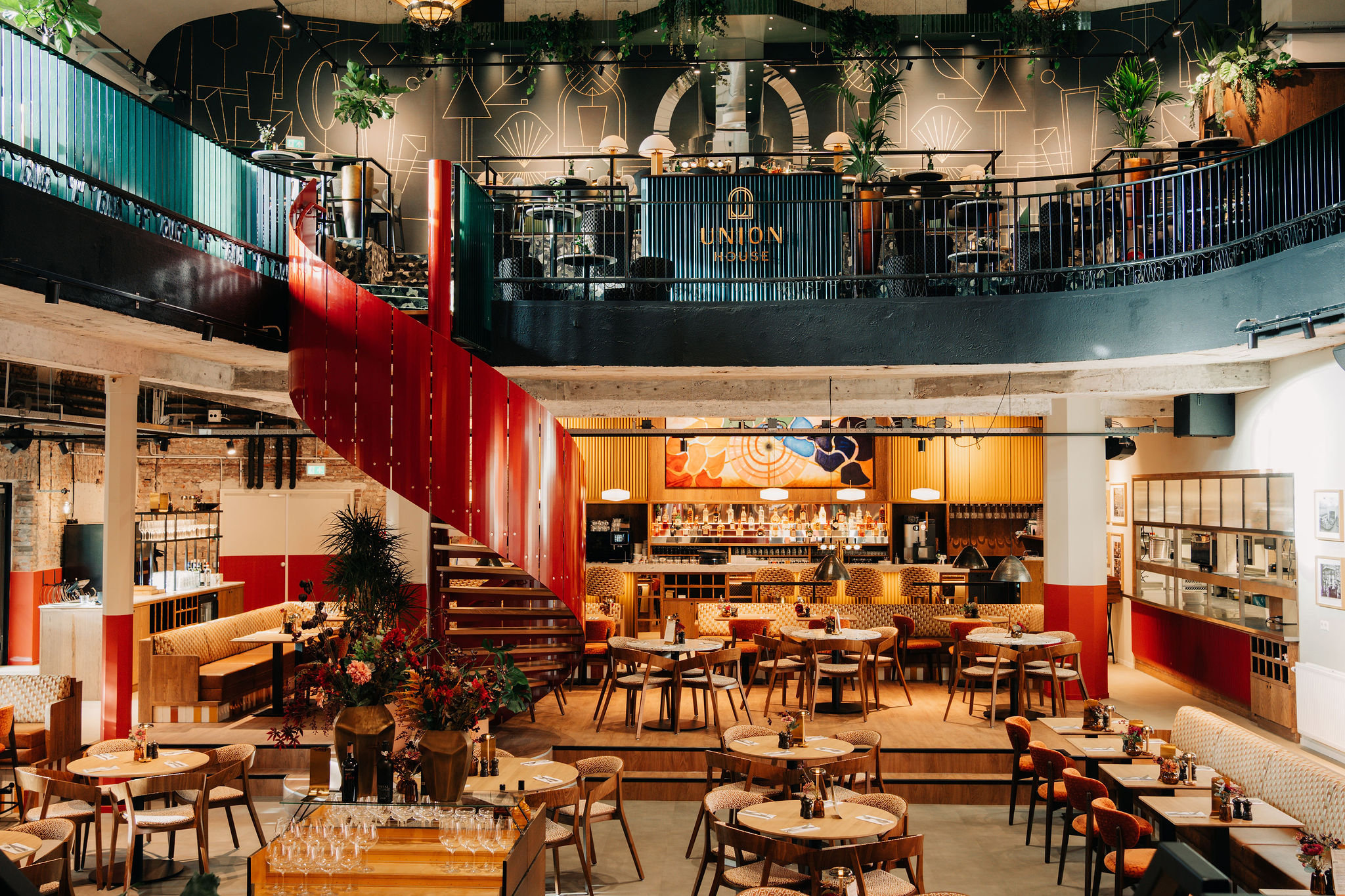 Union House aan de Oudegracht in Utrecht! Een bruisende ontmoetingsplek waar heerlijk eten, ontmoeten en cultuur naadloos in elkaar overgaan. Een restaurant met binnentuin, een wijnbar met uitzicht op het iconische podium en ruimte voor groepen. Om zo een kloppend hart van de stad te creëren.